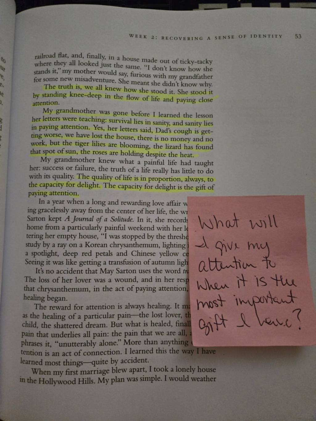“The quality of life is in proportion, always, to the capacity for delight. The capacity for delight is the gift of paying attention.”